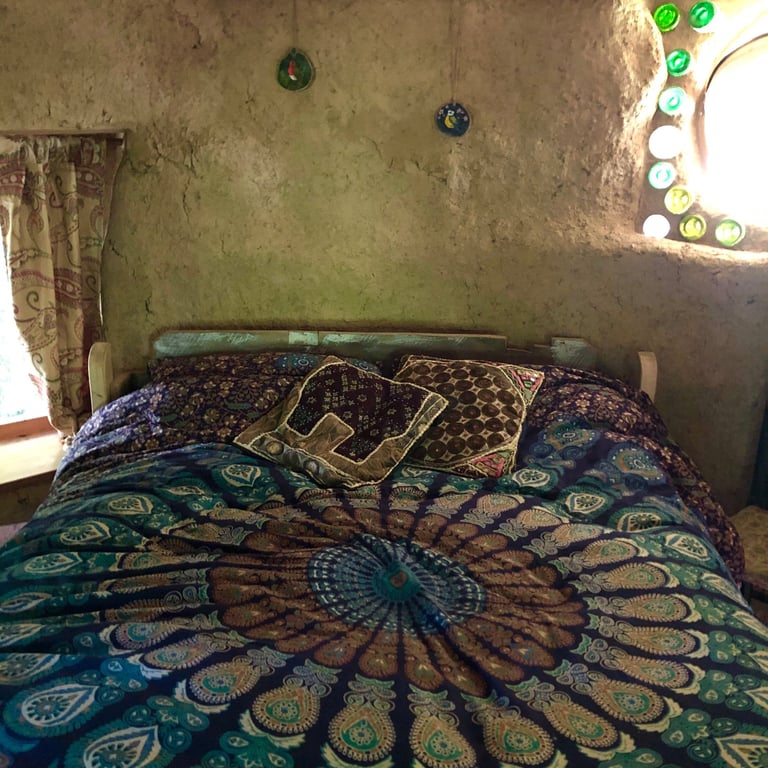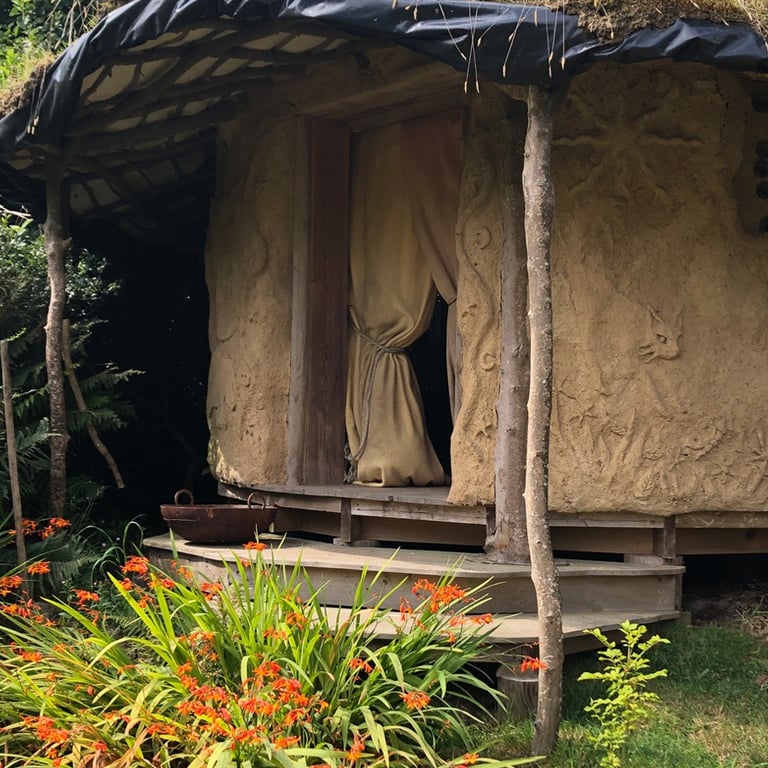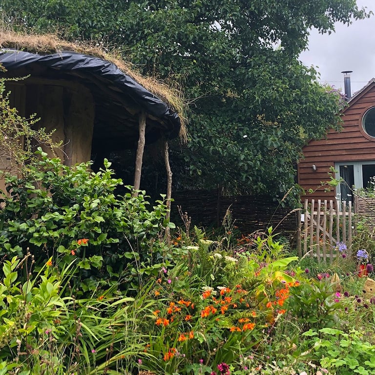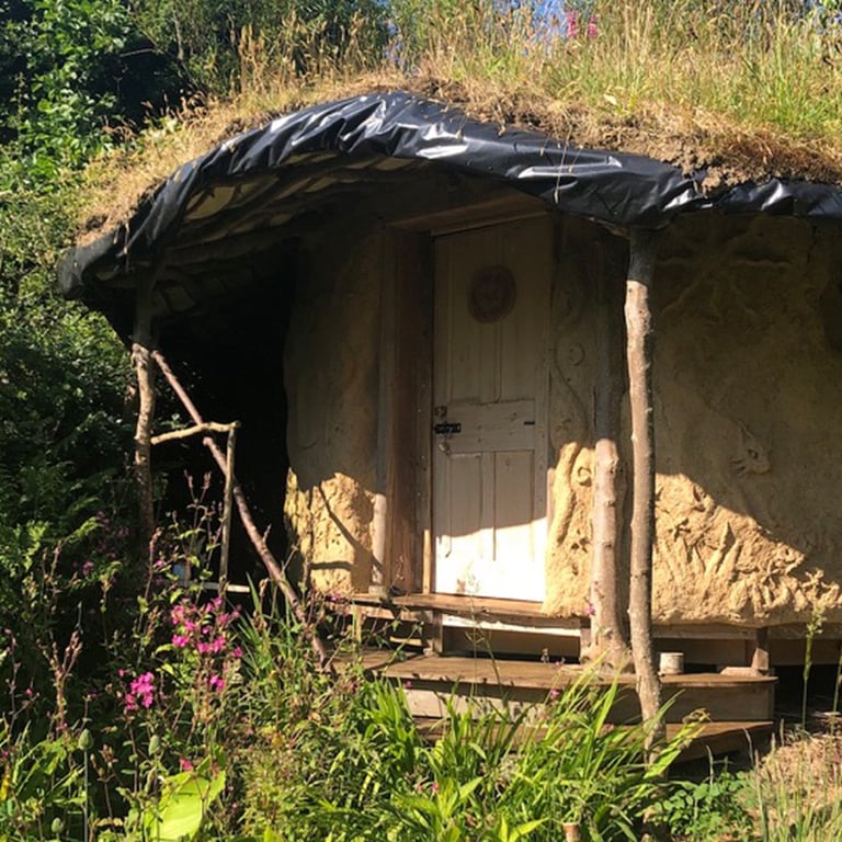 Nestled in amongst the trees, our small cob-wall round house, with green roof gives you an off-grid experience...there is no wifi here...you'll hear nothing except bees and birds and perhaps the quiet voices of those staying in our holiday annex nearby.