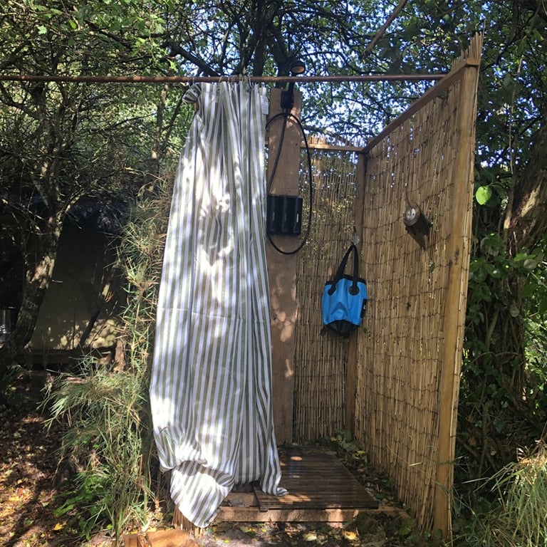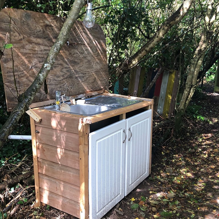 In the woods you will find our stylish compost toilet and a sink for any washing up you may have. You will also find an eco-shower (fill the container with your ideal temperature water,* switch on the pump and away you go!) Towels are provided.